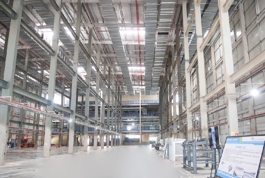 針對鋼結構屋面安裝引進高空壓瓦升降機,實現彩鋼瓦直接壓制、輸送至廠房頂部,場地運轉方便,操作安全可靠。針對樁基鋼筋籠加工,采用全自動機械化作業,確保鋼筋籠成品主筋纏繞間距均勻、直徑一致,確保一次成優。將灌注樁優化為擴底灌注樁,減少樁數約3300根,相較傳統模式,加工效率提升3-4倍,節約工期15天。