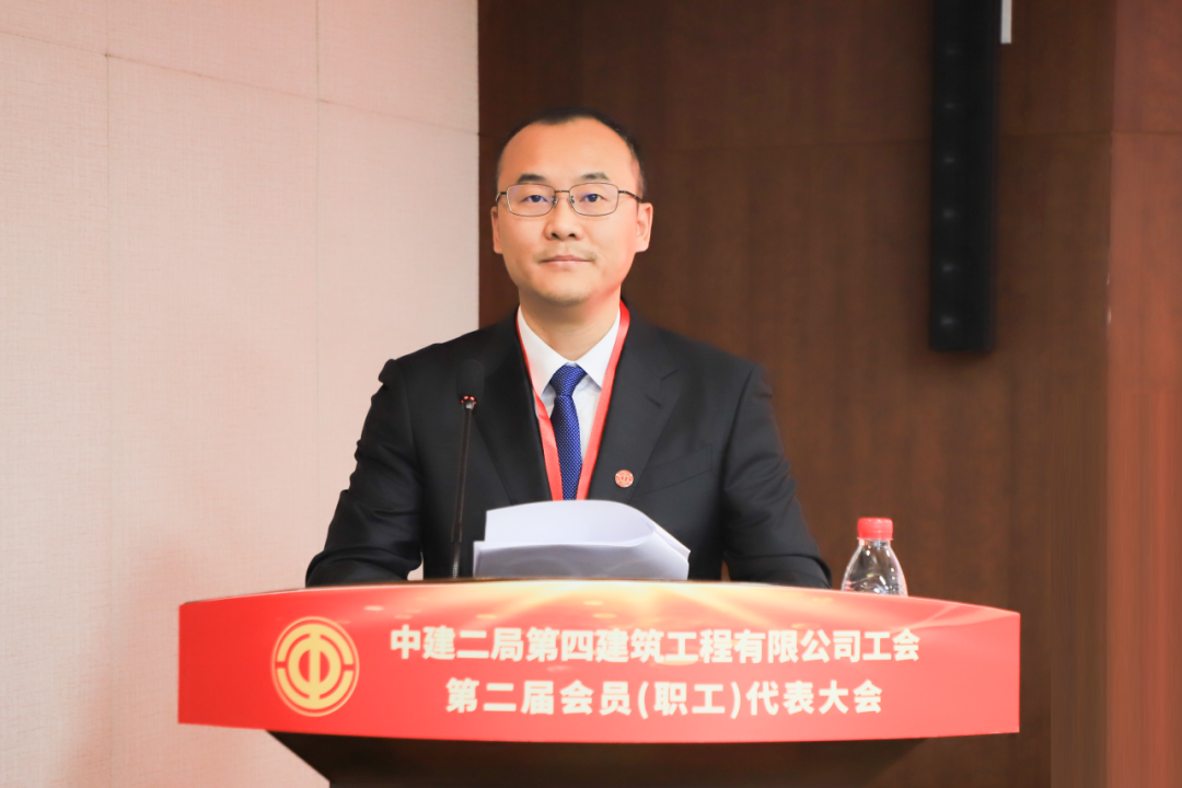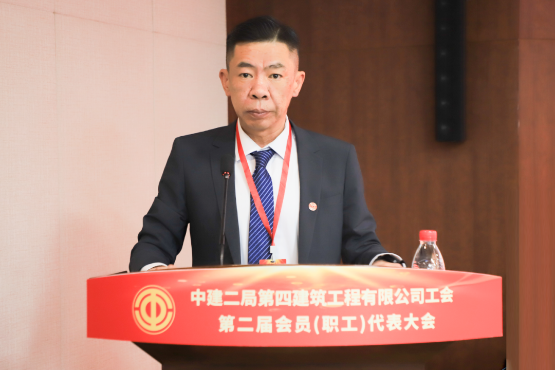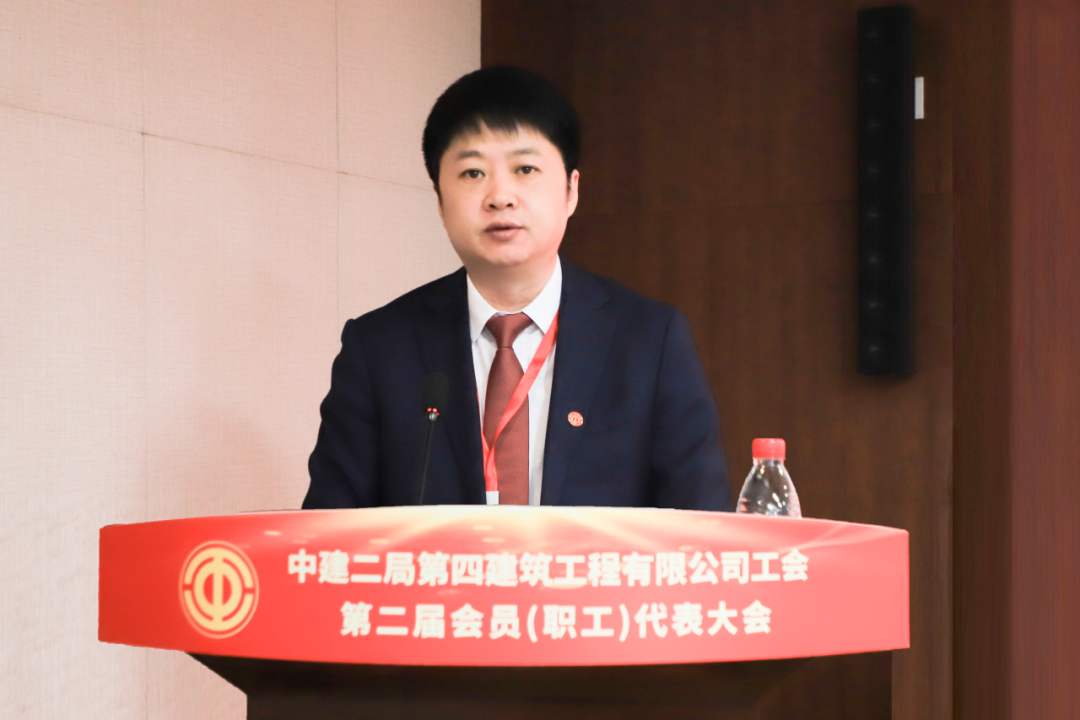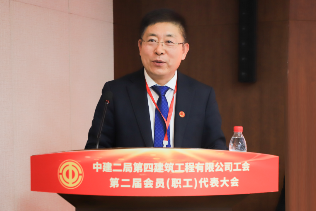 杜建波代表中建二局工會向大會的召開予以祝賀。他表示,四公司工會堅持以習近平新時代中國特色社會主義思想為指導,深入學習貫徹習近平總書記重要講話和指示批示精神,始終堅持融入中心、服務大局,在工會系統(tǒng)多個領域起到示范帶頭作用。四公司工會和廣大工會干部要不忘初心、牢記使命,強化思想政治引領,持續(xù)深化中國工會十八大精神的實踐運用,把牢工會工作正確方向。深刻把握工會組織在黨和國家工作大局中的使命任務,緊密圍繞國家重大戰(zhàn)略、重大工程、重大項目、重點產(chǎn)業(yè),聚焦局“高品質(zhì)履約年”各項目標任務,履行央企社會責任,深化產(chǎn)業(yè)工人隊伍建設改革,堅持服務職工為本,滿足職工群眾對美好生活的需要,提升廣大職工幸福指數(shù),提高工會工作能力和水平。