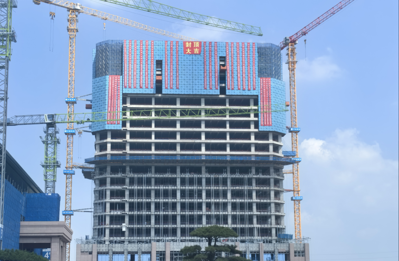 8月21日,特變電工智慧產業園總承包工程施工項目主體結構全部封頂